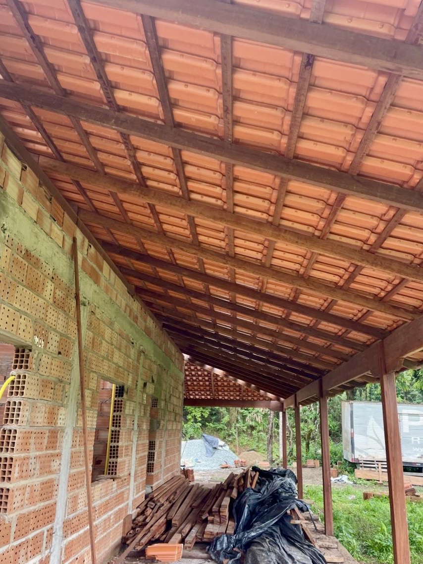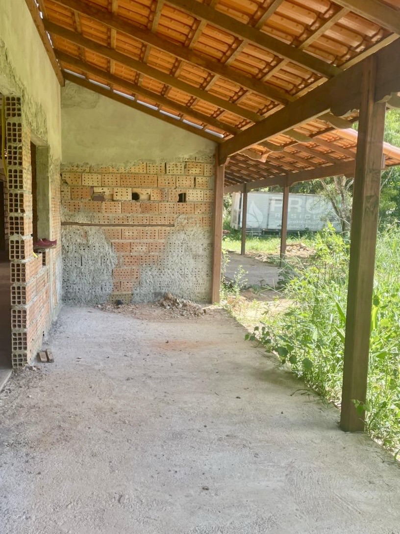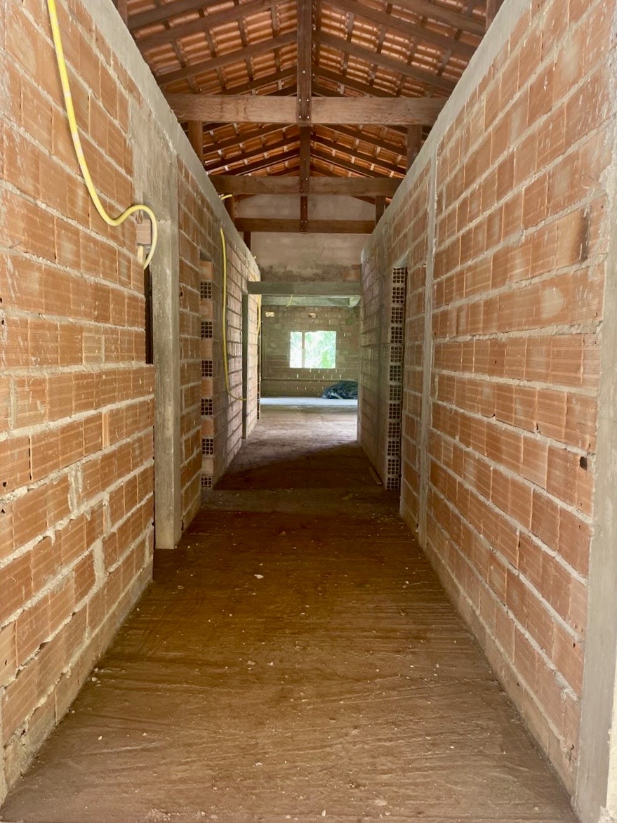 Possui casa em construção, com estrutura ampla, varanda e ótimo potencial para finalização conforme seu gosto.